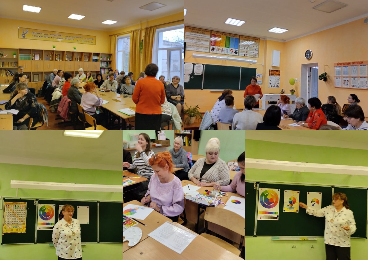 27 октября 2025 года на базе МБОУ «Красногвардейская школа №1» состоялся семинар для учителей музыки и изобразительного искусства по теме «Развитие творческих способностей на уроках искусства». Учитель музыки МБОУ «Амурская школа имени А.К. Чикаренко» Меметова Нефизе Ризаевна рассказала о развитии творческих способностей на уроках музыки. Учитель изобразительного искусства МБОУ «Октябрьская школа-гимназия» Чувилова Ольга Алексеевна провела мастер-класс «Процесс светообразования. Закономерности смешивания цветов