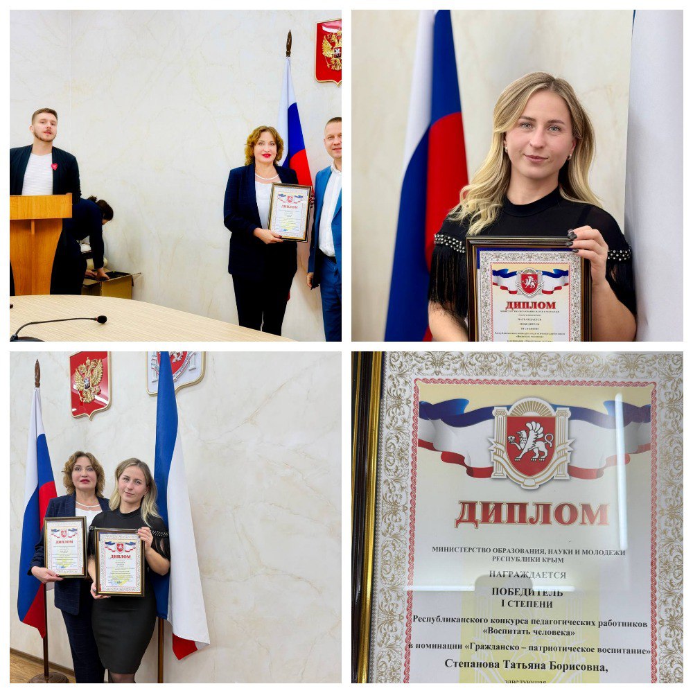 22 декабря 2025 года в актовом зале Министерства образования, науки и молодёжи Республики Крым состоялось награждение победителей Республиканского конкурса педагогических работников "Воспитать человека". По результатам конкурса дипломом 1 степени в номинации "Гражданско- патриотическое воспитание" награждена Степанова Т.Б., заведующая МБДОУ "Детский сад №5 "Непоседа" и дипломом 3 степени в номинации "Навигаторы детства" Гусева С.В., педагог-психолог, советник директора по воспитанию и взаимодействию с детскими общественными объединениями. Таким образом, итоги конкурса подтверждают высокий уровень профессиона